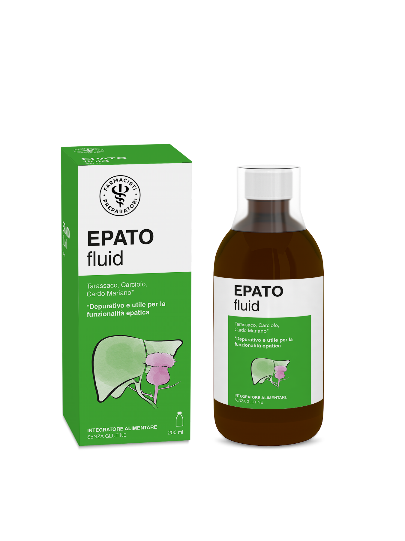 Ingredienti: acqua, fruttosio, miele di acacia, glicerolo, carciofo foglie e sommità fiorite e.s. tit. 13% in acidi caffeilchinici calc. come acido clorogenico (Cynara scolymus L., glucosio disidratato), cardo mariano semi e.s. tit. 2% in silimarina calc. come silibina (Silybum marianum Gaertn., maltodestrina), tarassaco radici e.s. tit. 2% in inulina (Taraxacum officinale Weber, maltodestrina); acidificante: acido citrico, addensante: gomma xanthan; conservanti: sodio benzoato, potassio sorbato; aromi.