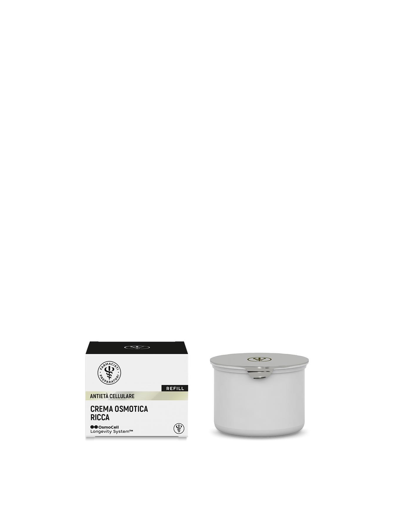 Il refill permette di ricaricare il vaso della crema senza doverne acquistare una nuova. Con il riacquisto del solo refill risparmiamo il 77% di plastica rispetto a un vaso standard completamente in plastica.
