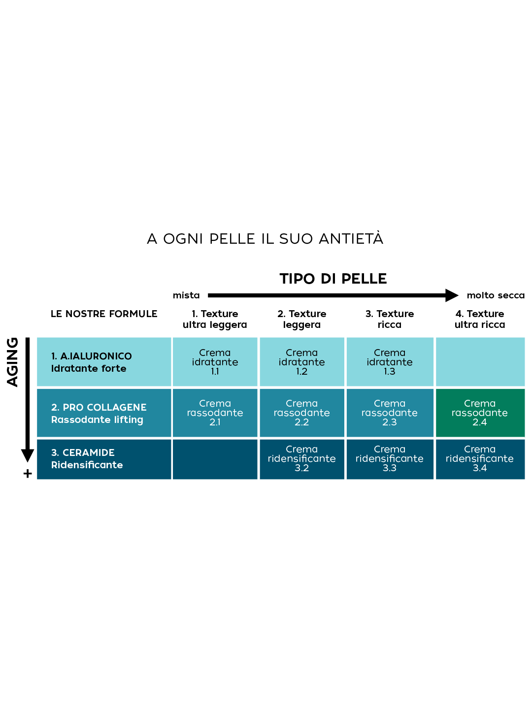 La Formula Pro Collagene associa al brevetto speciali ingredienti cosmetici selezionati in maniera accurata e differenziata così da rispondere alle esigenze di ogni tipo di pelle.