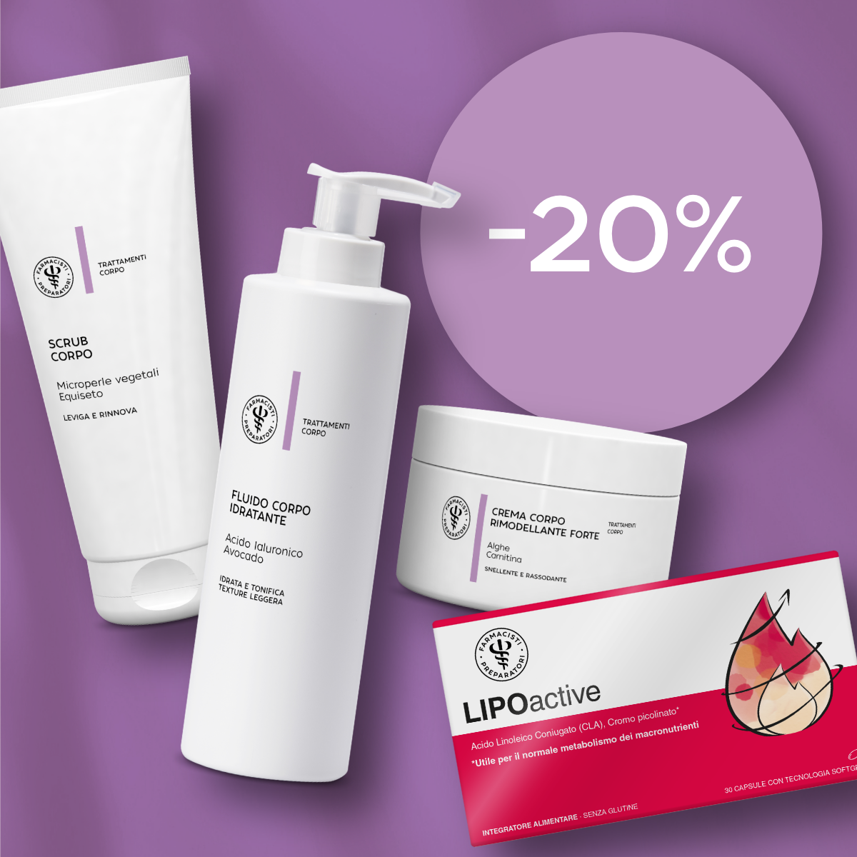 Nella sezione Promo attive trovi una selezione di prodotti in offerta per prenderti cura della tua bellezza e del tuo benessere. Ogni articolo è scelto per garantire qualità, efficacia e sicurezza. Approfitta delle promozioni su trattamenti skincare, haircare e integratori, con la garanzia della professionalità dei nostri Farmacisti Preparatori.