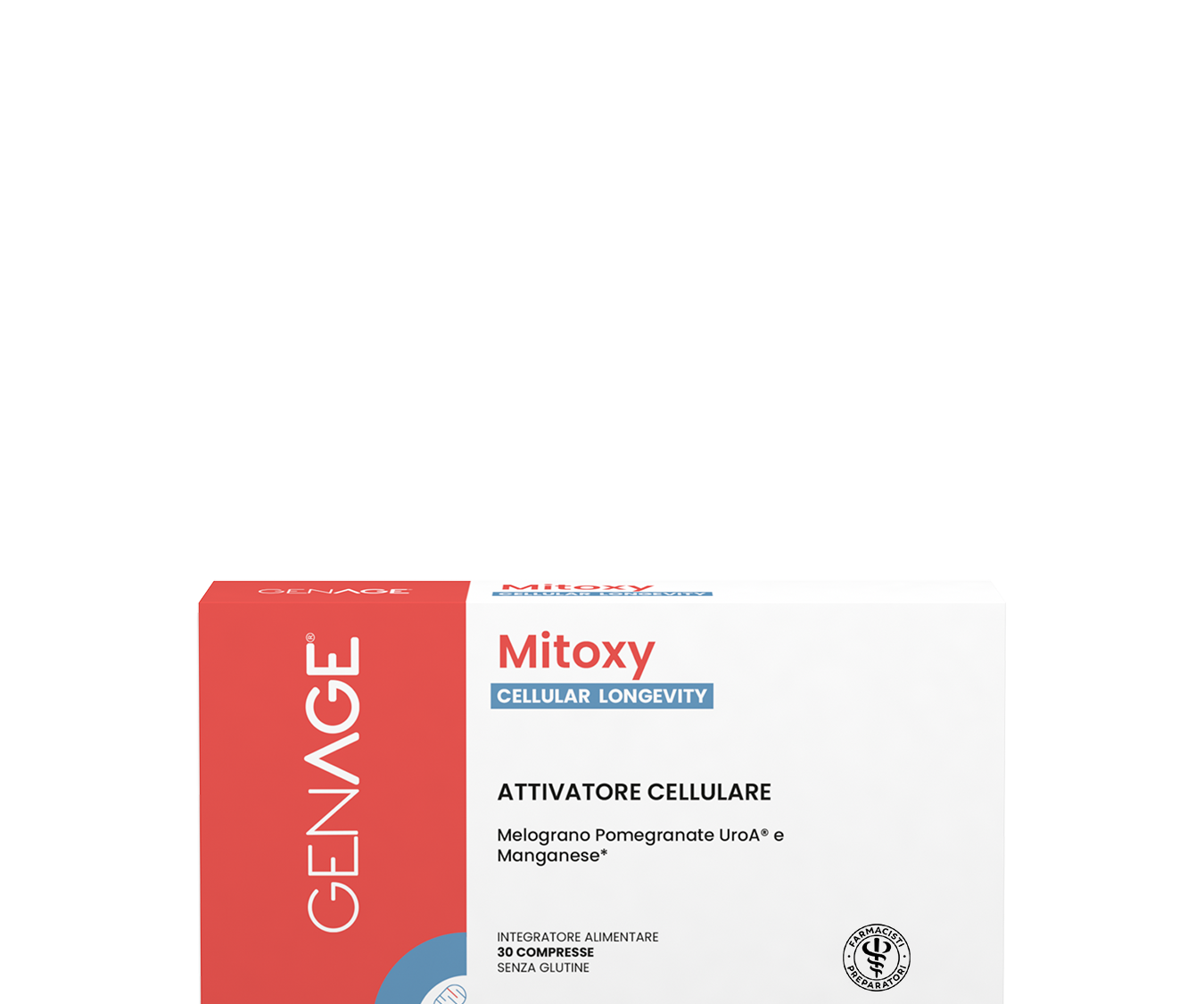 Mitoxy, a base di Pomegranate UroA®, esclusivo estratto di Melgrano ricco in Punicalagine, con Manganese**. Apporta nutrienti specifici a livello mitocondriale per svolgere un'azione benefica sul metabolismo energetico cellulare e contrastare lo stress ossidativo**.