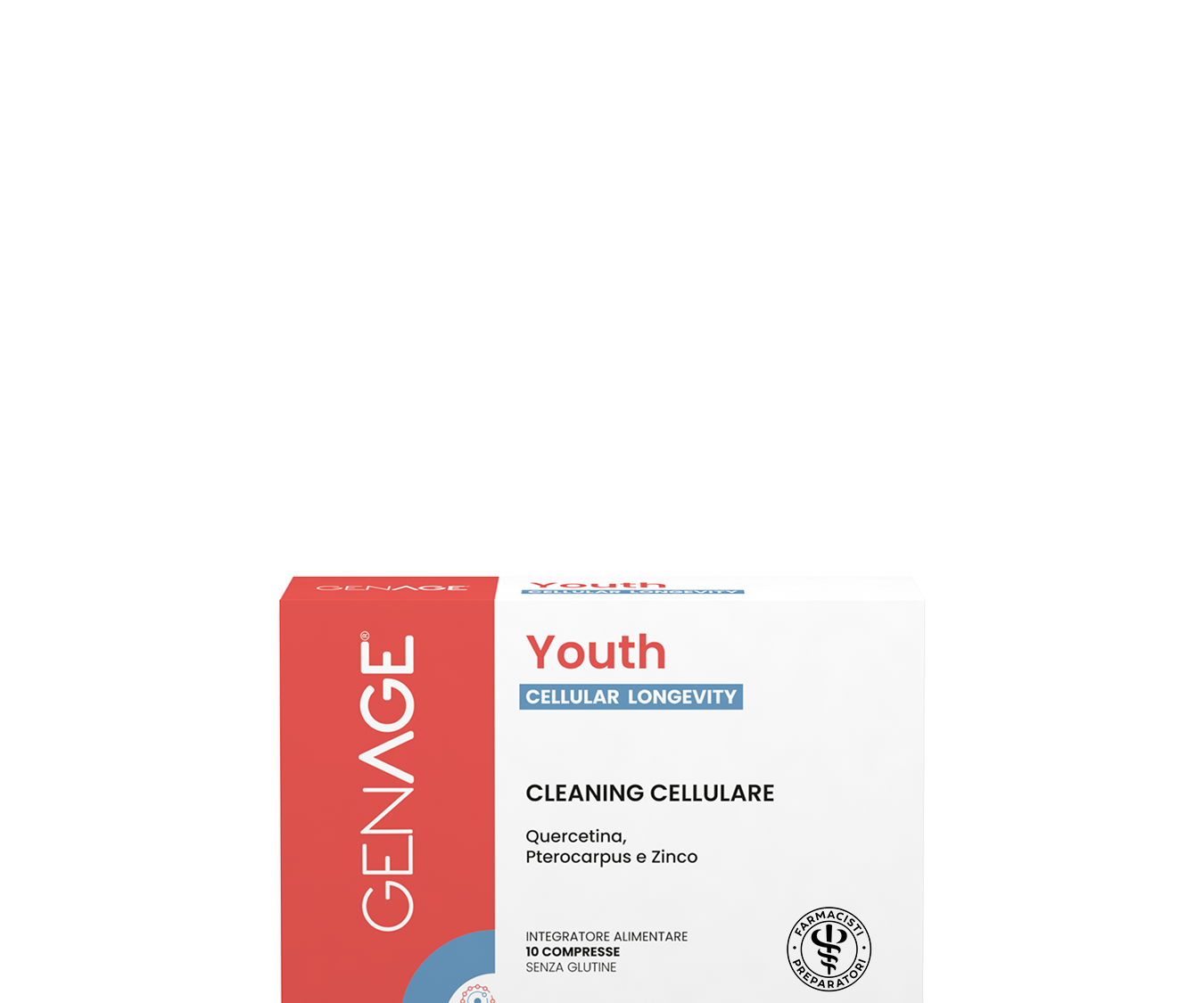 Youth, a base di Pterocarpus, Quercetina e Zinco*** che contribuisce alla normale sintesi del DNA e proteica, alla normale funzione cognitiva, al metabolismo dei carboidrati e degli acidi grassi e ha un’azione antiossidante. Innovativo booster mensile, apporta nutrienti specifici che agiscono su alcuni fattori dell’invecchiamento cellulare (stress ossidativo e accumulo di prodotti del metabolismo***) per un’azione di cleaning cellulare.